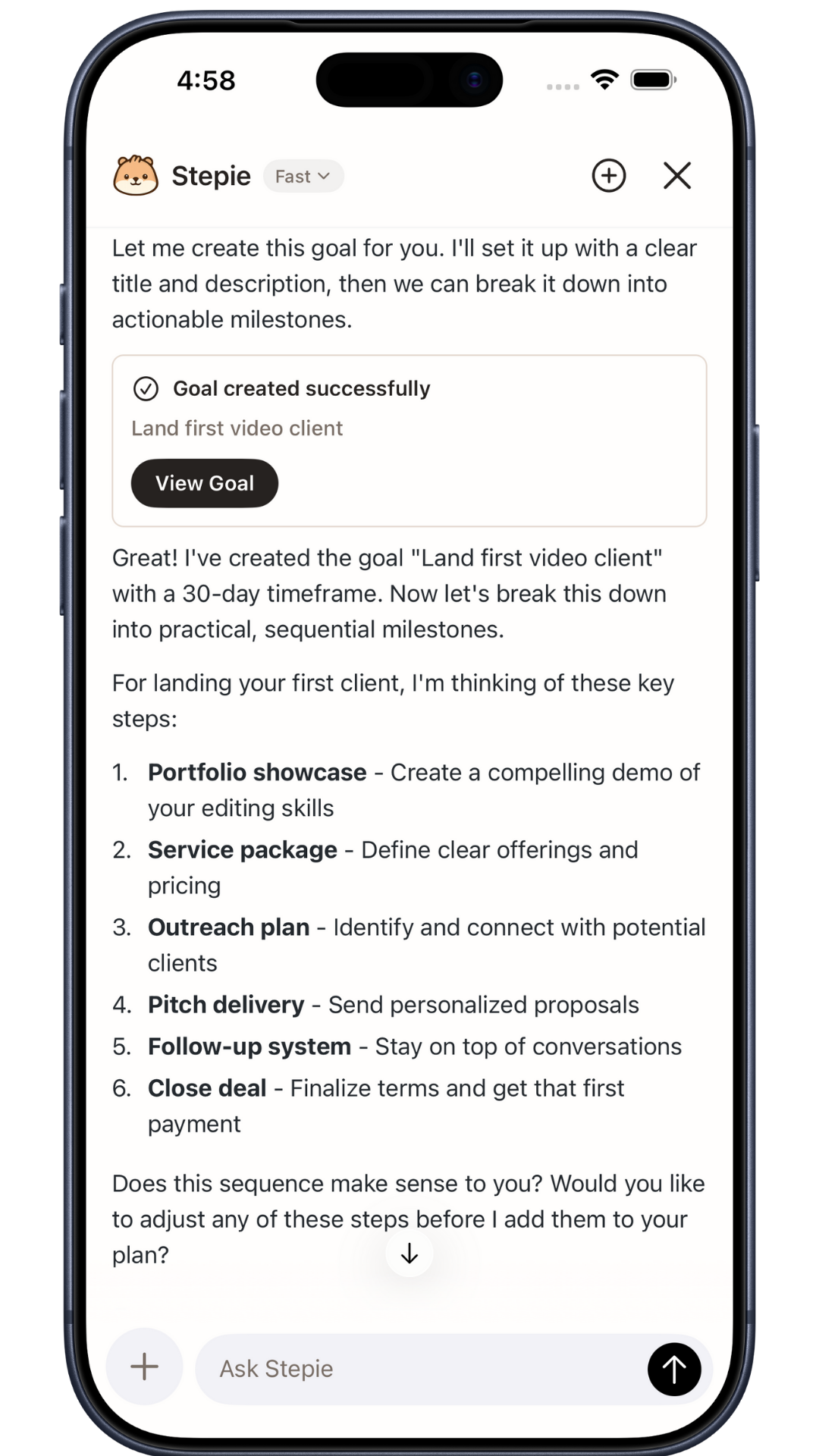 Chat with Stepie to arrange plans and daily tasks.